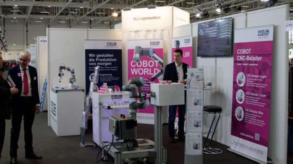 Premiere feierten die CNC-Belader der HLS COBOT WORLD auf der FMB Süd 2019 in Augsburg. Erstmals stellte HLS hier die Beladeeinheiten einem breiten Publikum vor und sorgte mit dem vor Ort aufgestellten COBOT CNC-Belader light für einen Besuchermagneten. Mit den CNC-Beladern light, box und court kombiniert mit den Universal Robots deckt HLS eine breite Palette an verschiedenen Anwendungen ab. Die COBOT CNC-Belader sind eine einfache und flexibel einsetzbare COBOT-Lösung zur automatischen Be- und Entladung von CNC-Maschinen mit maximaler Flexibilität bei geringen Kosten. Großen Anklang fand auf der Messe auch der Vortrag von Uwe Schmidt, Leiter der HLS COBOT WORLD, zum Thema „Mensch-Roboter-Kollaboration mit COBOTs für CNC-Maschinenbeladung“.