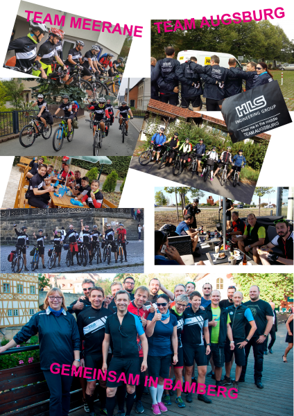 Meet me in the middle - which bike team is faster in Bamberg? But the most important point of this competition was especially the team spirit, because all members of the team had to arrive together in Bamberg. Employees of HLS Augsburg (and HLS Fulda) and employees of HLS Meerane (and HLS Chemnitz) were cycling and fighting two long days, not only against the other team, but also against rain, hills and tired legs.